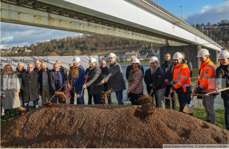 Es wird eines der größten Bauprojekte in der jüngeren Geschichte der Stadt Koblenz: Der Neubau der Pfaffendorfer Brücke. Mit dem Spatenstich fiel nunmehr auch der offizielle Startschuss für diesen häufig als „Jahrhundertbauprojekt“ bezeichneten Brückenneubau über den Rhein. Gemeinsam mit Vertreterinnen und Vertretern aus Politik, Behörden und den beteiligen Unternehmen gaben nun unter anderem der Koblenzer Oberbürgermeister David Langner und die rheinland-pfälzische Ministerin für Wirtschaft, Verkehr, Landwirtschaft und Weinbau, Daniela Schmitt, den symbolischen Start für das Neubauprojekt.